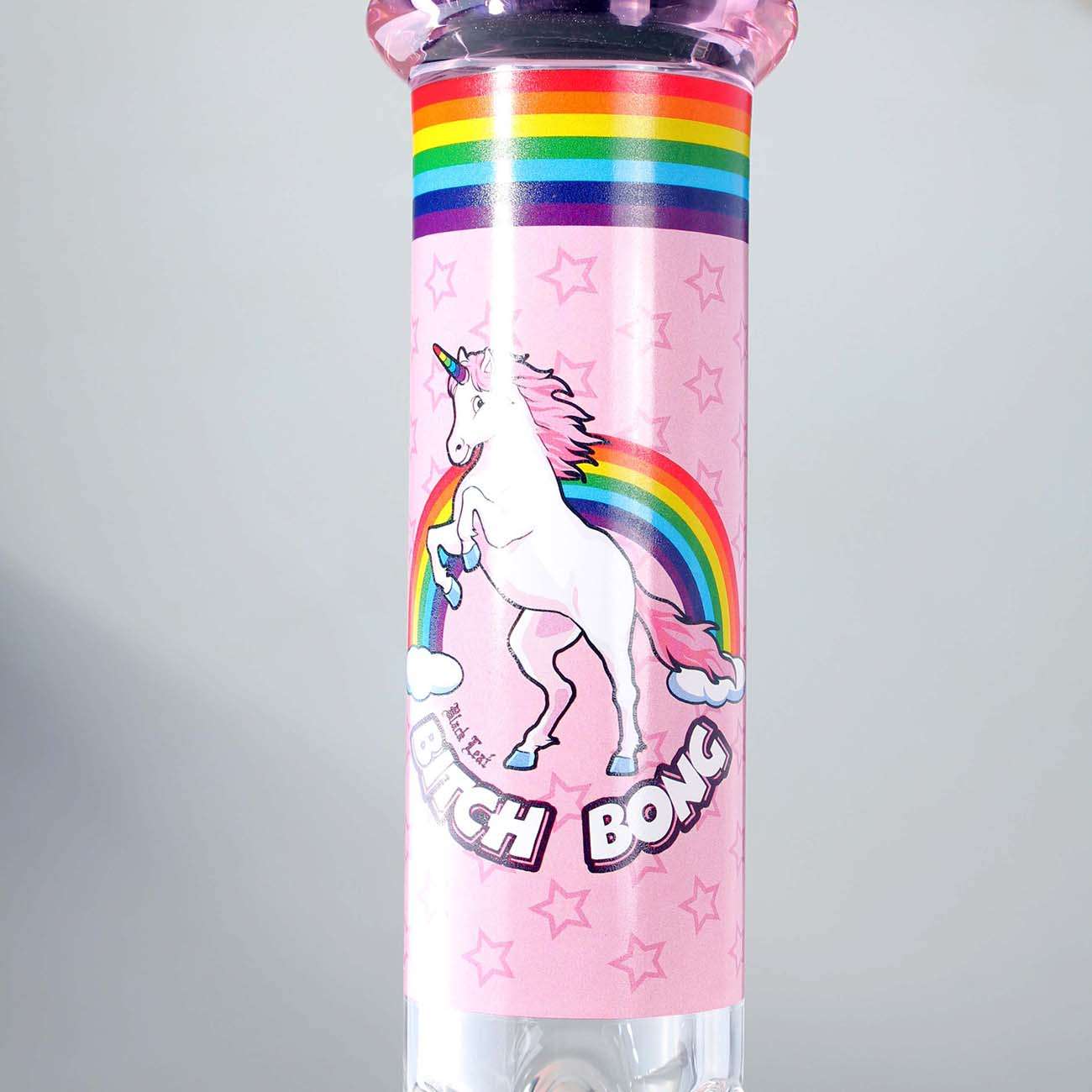 Optisch überzeugt die BITCH BONG durch ihr auffälliges Design mit farbigen Elementen am Perkolator, Mundstück, Kopf und Chillum – ein echter Hingucker in jeder Sammlung.